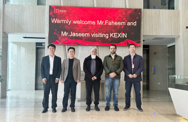 On the day of the signing ceremony, Mr. Faheem, CEO of Areebah Technologies, and Mr. Jaseem, COO, visited the exhibition hall of Kexin Technology accompanied by representatives from the company. In the exhibition hall, Mr. Faheem gained a detailed understanding of Kexin Technology's full range of product systems and highly appreciated Kexin Technology's technological innovation and product development capabilities.
